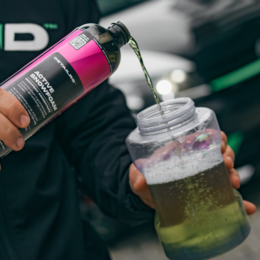 1. Voeg 25ml Active Snowfoam toe in je foamlance. 2. Voeg 475ml water toe.3. Schuim de auto in.