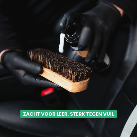 - Borstelen: Gebruik een zachte borstel, zoals de Detailrs Horsebrush, om het product in te werken.