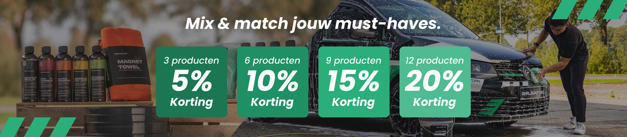 Ja, je kunt alle producten naar keuze mixen: interieur, exterieur of accessoires. Zo stel je precies de bundel samen die bij jouw auto en wensen past.