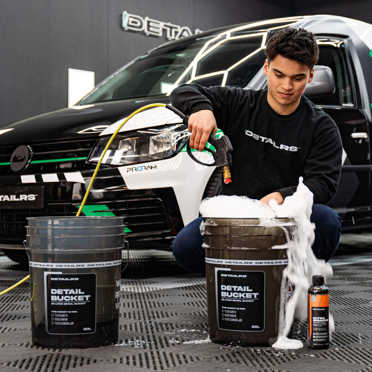 De ultieme wasemmer voor het detailen: stevig, optioneel met vuilrooster en een blikvanger bij elke carwash.