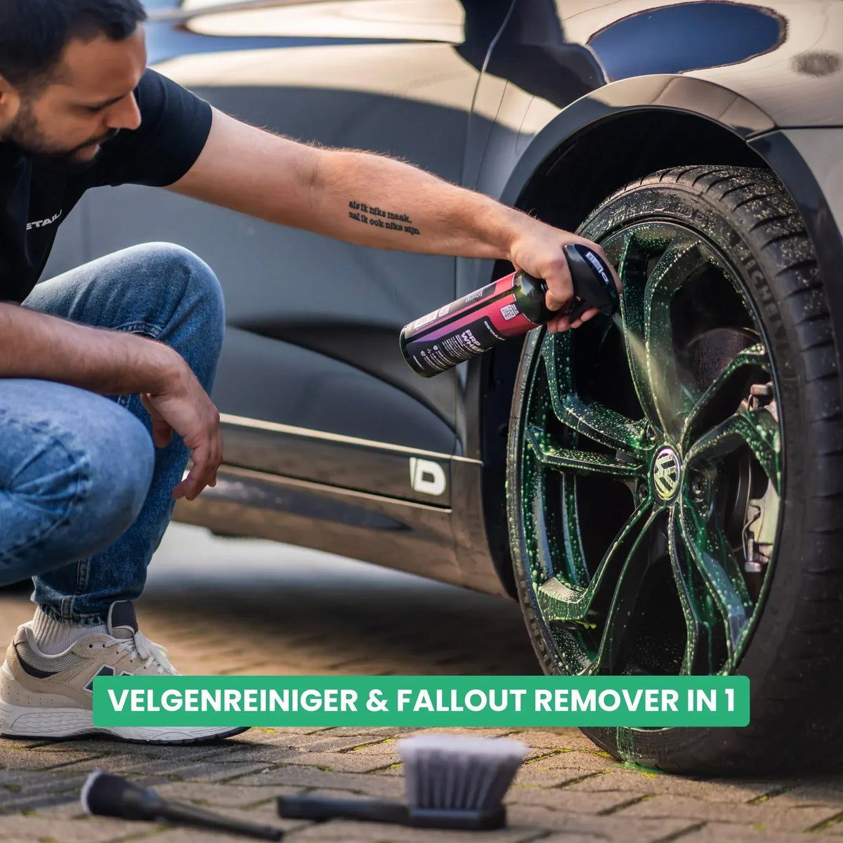 Een veilige velgenreiniger dat krachtig is tegen vuil, remstof en ingebrande ijzerdeeltjes verwijdert.