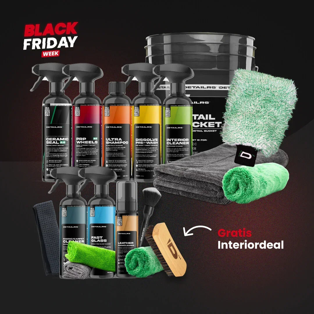In het pakket ontvang je 19 producten voor het wassen, drogen, krijgen van een diepe glans, bescherming tegen vogelpoep & uv-straling. Tijdens Black Friday krijg je daarbovenop een gratis InteriorDeal bij, met alles voor leer, stof, glas en meer.