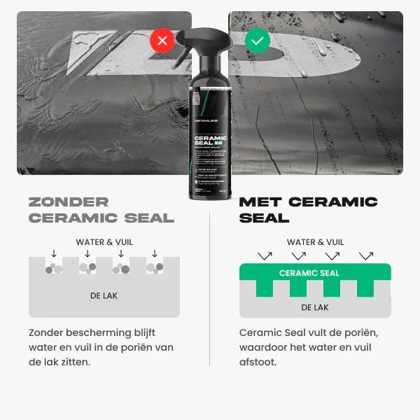 Ceramic Seal is een spraysealant met SiO2 wat zorgt voor langdurige glans en water- en vuilafstotende bescherming op elk voertuig en oppervlak.