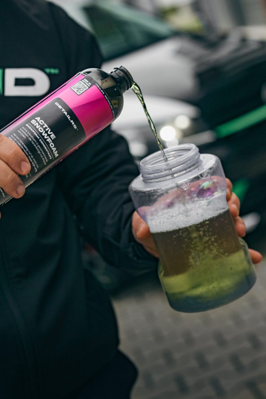 1. Voeg 25ml Active Snowfoam toe in je foamlance.