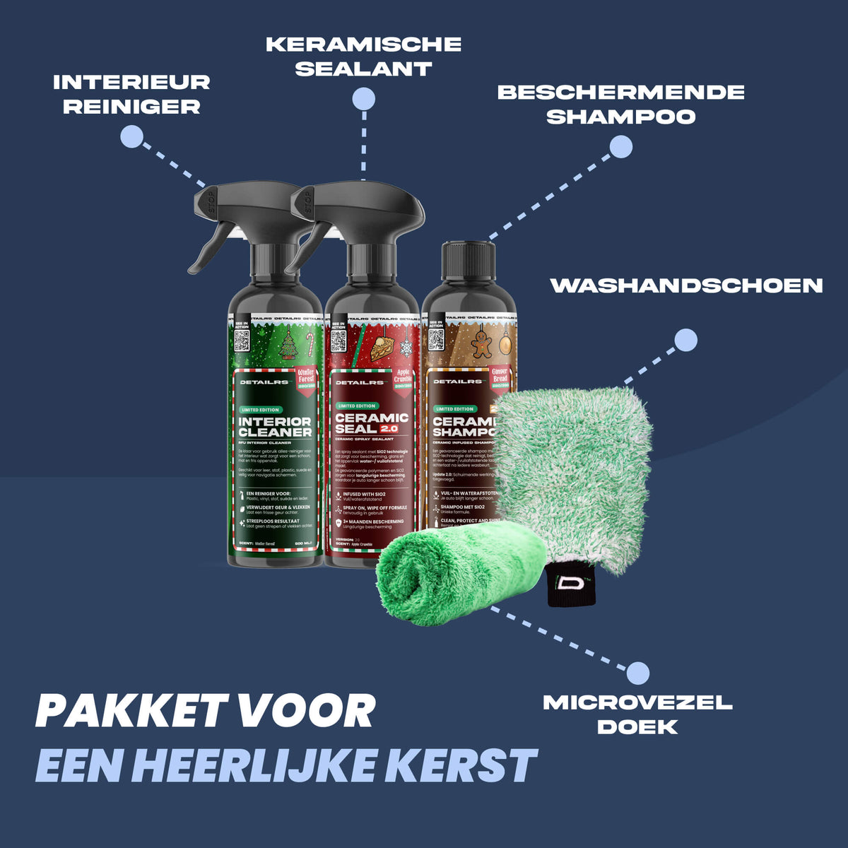 De Limited Edition Christmas Set brengt drie van onze meest geliefde producten met heerlijke Kerstgeuren! Je krijgt Ceramic Seal voor langdurige bescherming met diepe glans, Ceramic Shampoo voor een krachtige veilige wasbeurt en Interior Cleaner voor een schoon en fris interieur.