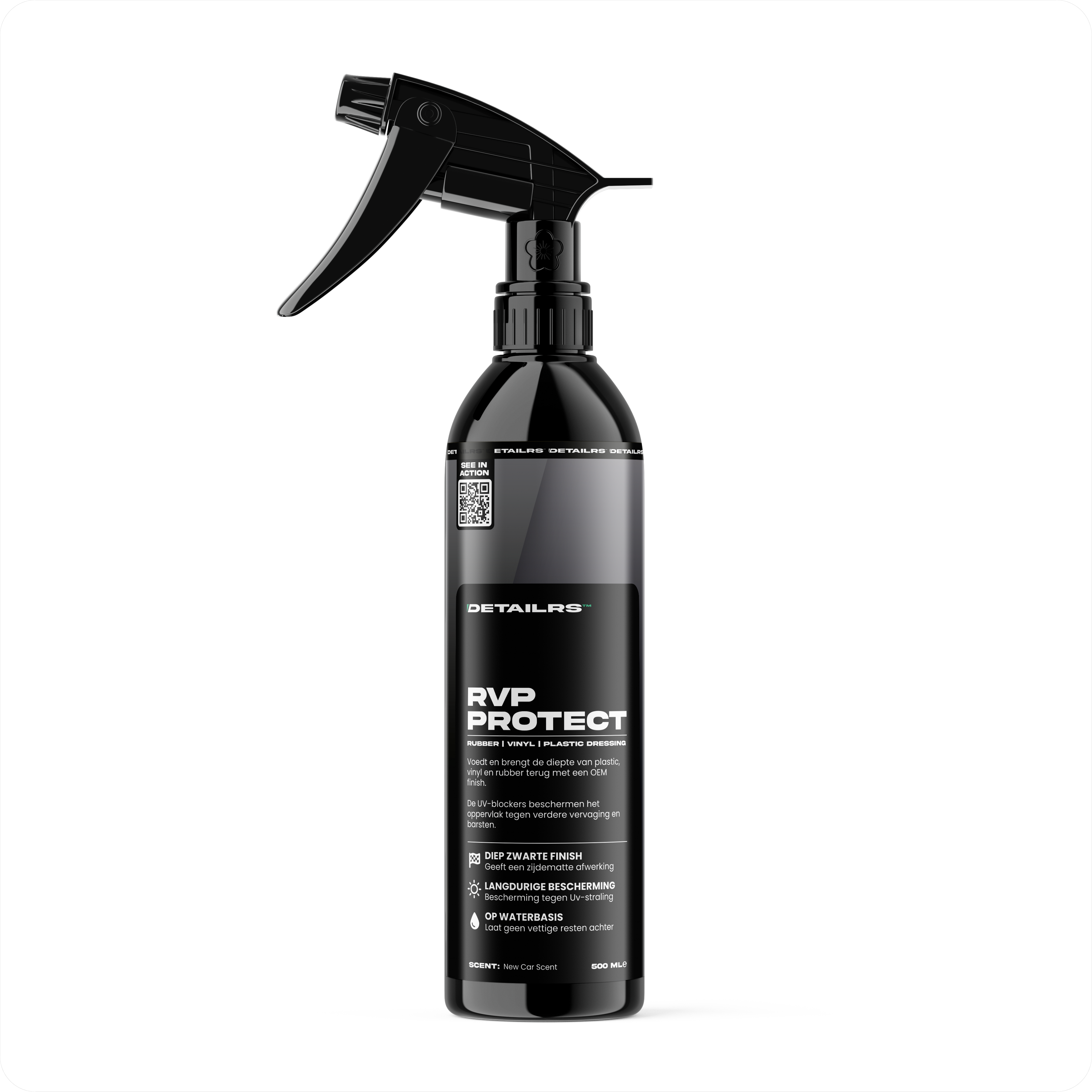 De set bevat Dissolve Pre-wash, een krachtige ontvetter voor plastic, rubber, autolak en metaal, en RVP Protect voor diepe kleur en glans op plastic en rubbere onderdelen.